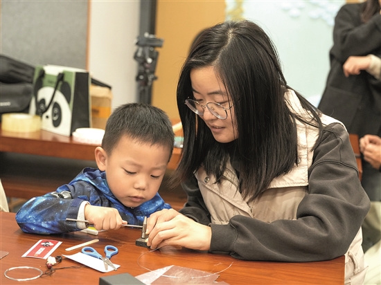 现场亲子组合默契配合,大家在体验手工乐趣的同时,进一步增进了对江口沉银文物的认知与理解,实现不同年龄段群体的文化共鸣,让传统文化在互动中得以传承。